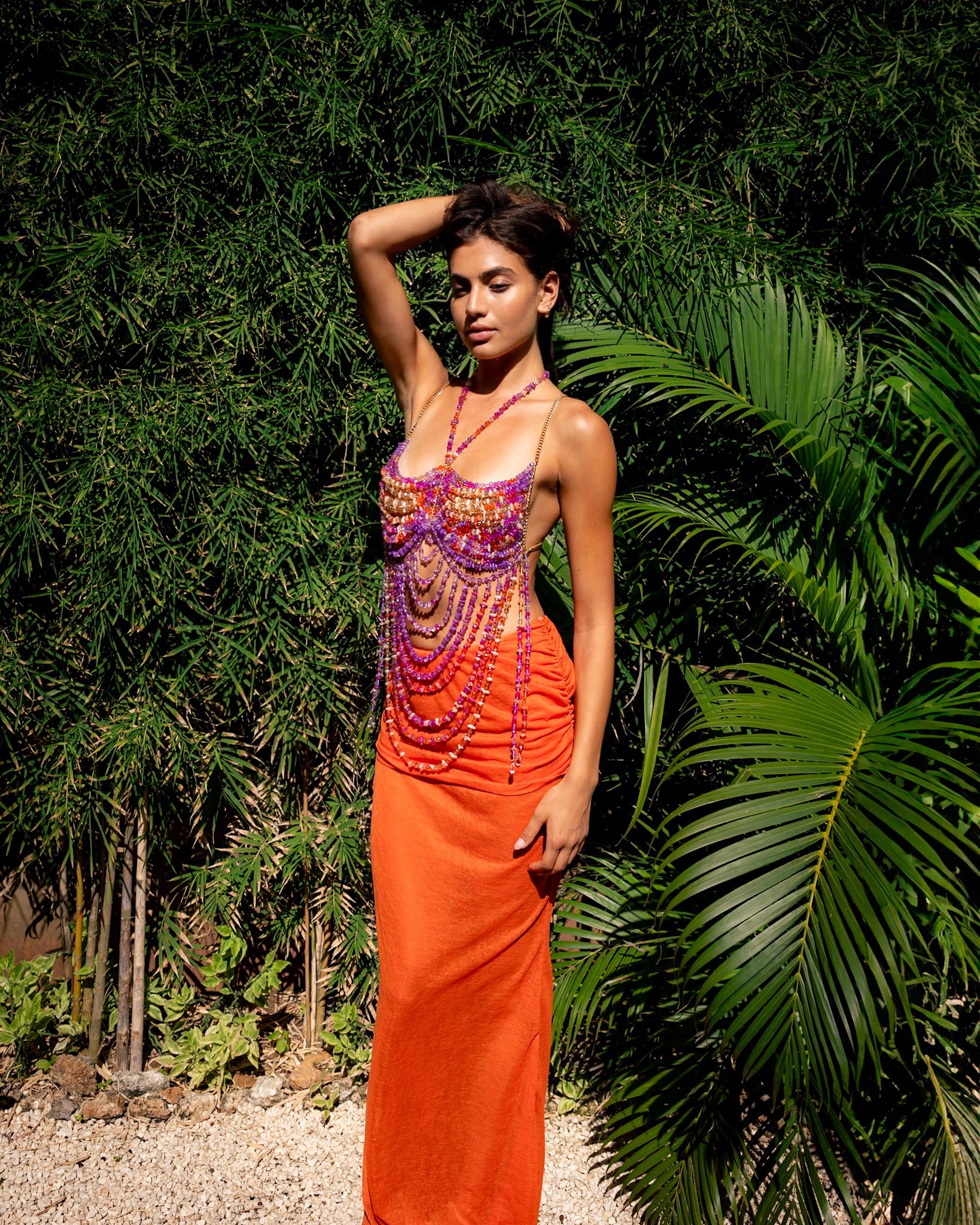 RUCHED OVERLAY DETAIL MAXI SKIRT