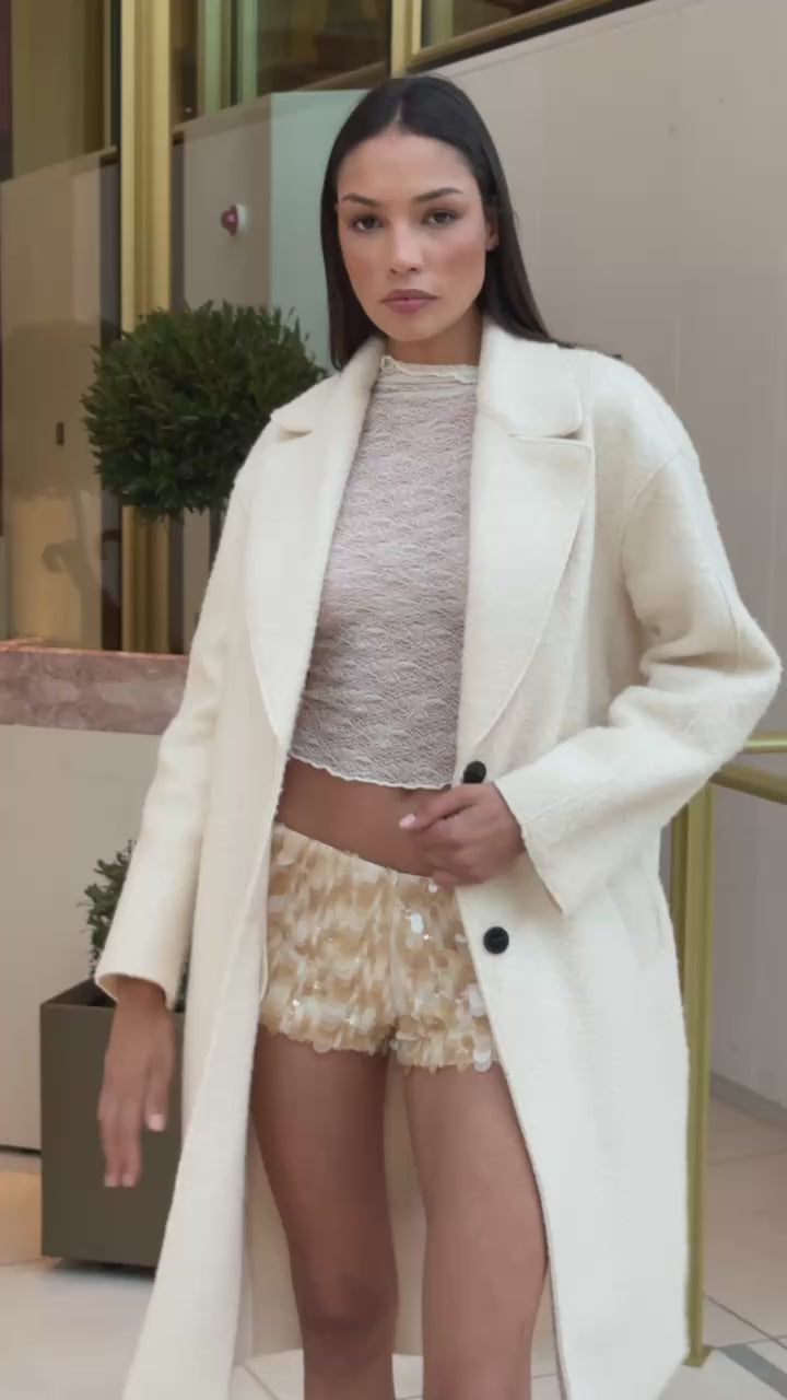 Oyster Cream Luxe Textured Knit Longsleeve Top