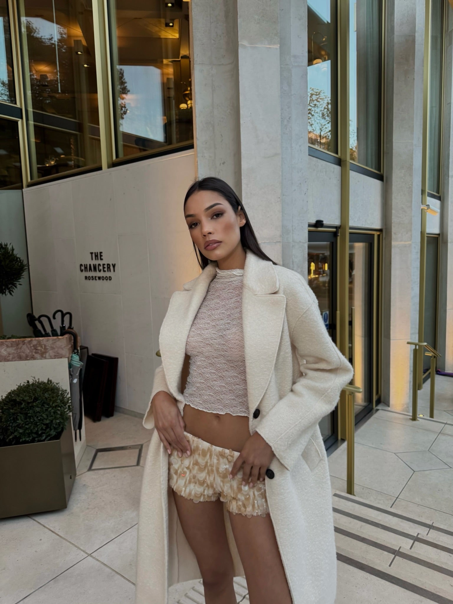 Oyster Cream Luxe Sequin Shorts