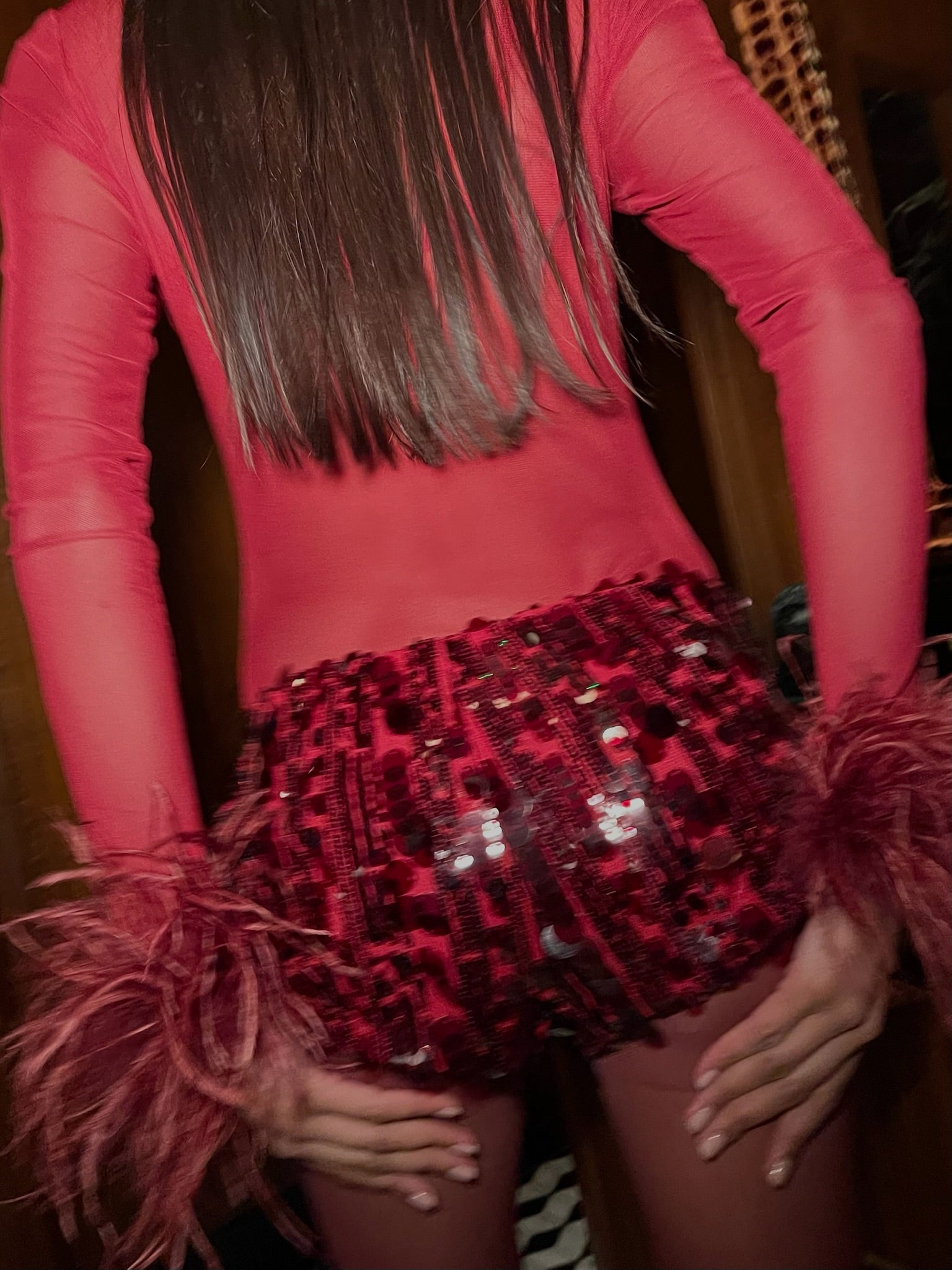 Merlot Red Sequin Shorts